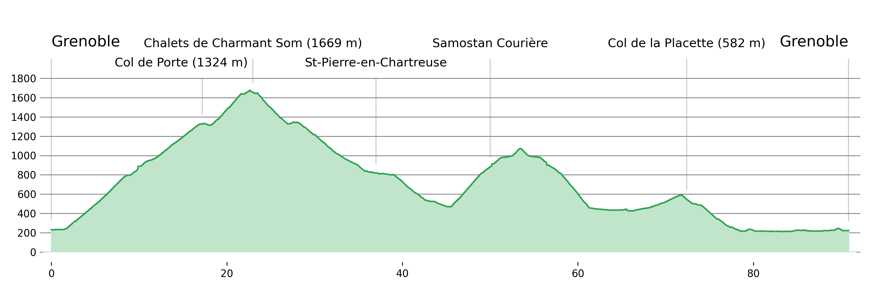 Vzpon na Col de Charmette (1261 m) se začne malo pred koncem soteske Guiers Mort. Do samostanov Currière je vzpon stalno strm 10 % ali več. Kmalu za samostanom je parkirišče za izletnike in rampa. Naslednje štiri kilometre je prepovedan promet na cesti, kar sem vedel, saj sem se o tem predhodno pozanimal na internetu. Prebral sem, da je cesta v slabem stanju in pogojno prevozna s cestnim kolesom. V resnici je ves čas slab asfalt. Le 200 m med samostanom in rampo ter 300 m v prvem predoru je resnično slabih. Če ne bi imel lučke, bi moral iti v predoru peš. Vmes je sicer še nekaj makadama, ampak v dobrem stanju.